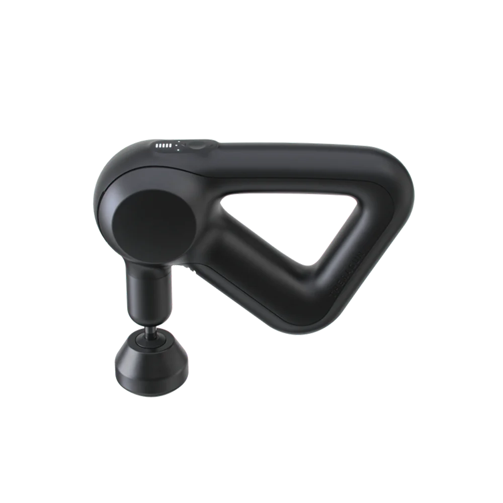 Theragun Prime nie jest zwykłym masażerem wibracyjnym. Dzięki technologii terapii perkusyjnej (ang. percussive therapy) wykonuje głębokie, rytmiczne uderzenia, które docierają nawet 60% głębiej niż klasyczne urządzenia masujące.