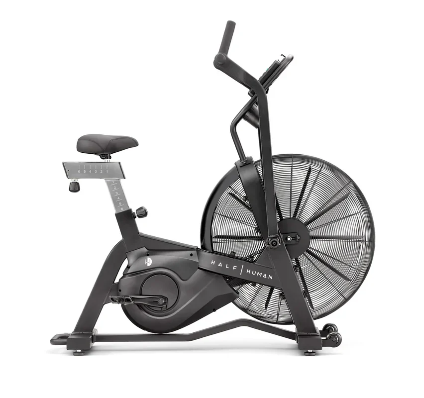 Half Human Air Bike zapewnia wygodę dzięki regulowanemu w dwóch płaszczyznach siodełku oraz ergonomicznym uchwytom z różnymi opcjami chwytu. Antypoślizgowe pedały, kółka transportowe i regulowane stopki stabilizujące ułatwiają użytkowanie i przemieszczanie urządzenia. Rower przeznaczony jest dla osób o wadze do 150 kg – to solidny wybór zarówno do domu, jak i do studia treningowego.